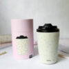 With your personal thermos coffee mug, you can save money and the environment. You don’t have to grab another disposable coffee cup. Take the thermos mug with you on your next adventure. It keeps your coffee or tea hot for up to 3 hours and your cold brew or iced tea refreshingly cold for up to 4 hours. The thermos mug is made of stainless steel and comes with a lid that has a small opening for easy sipping.