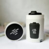 With your personal thermos coffee mug, you can save money and the environment. You don’t have to grab another disposable coffee cup. Take the thermos mug with you on your next adventure. It keeps your coffee or tea hot for up to 3 hours and your cold brew or iced tea refreshingly cold for up to 4 hours. The thermos mug is made of stainless steel and comes with a lid that has a small opening for easy sipping.
