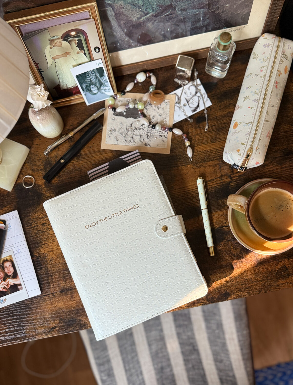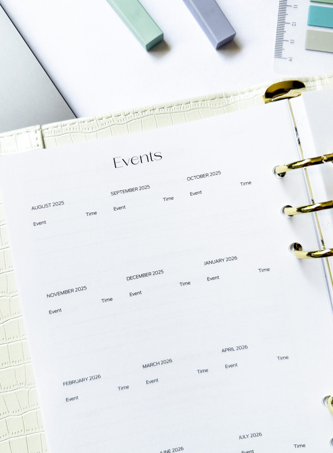 Ring binder from premium faux leather A5 – Happy Calendar planner 2025/26 (white)