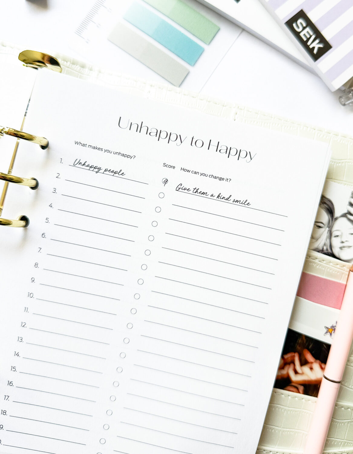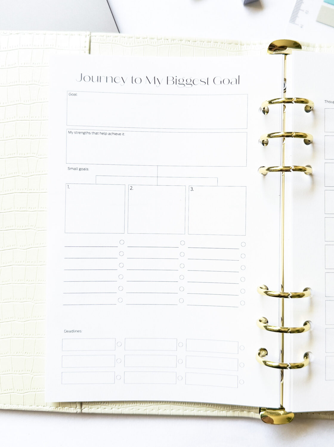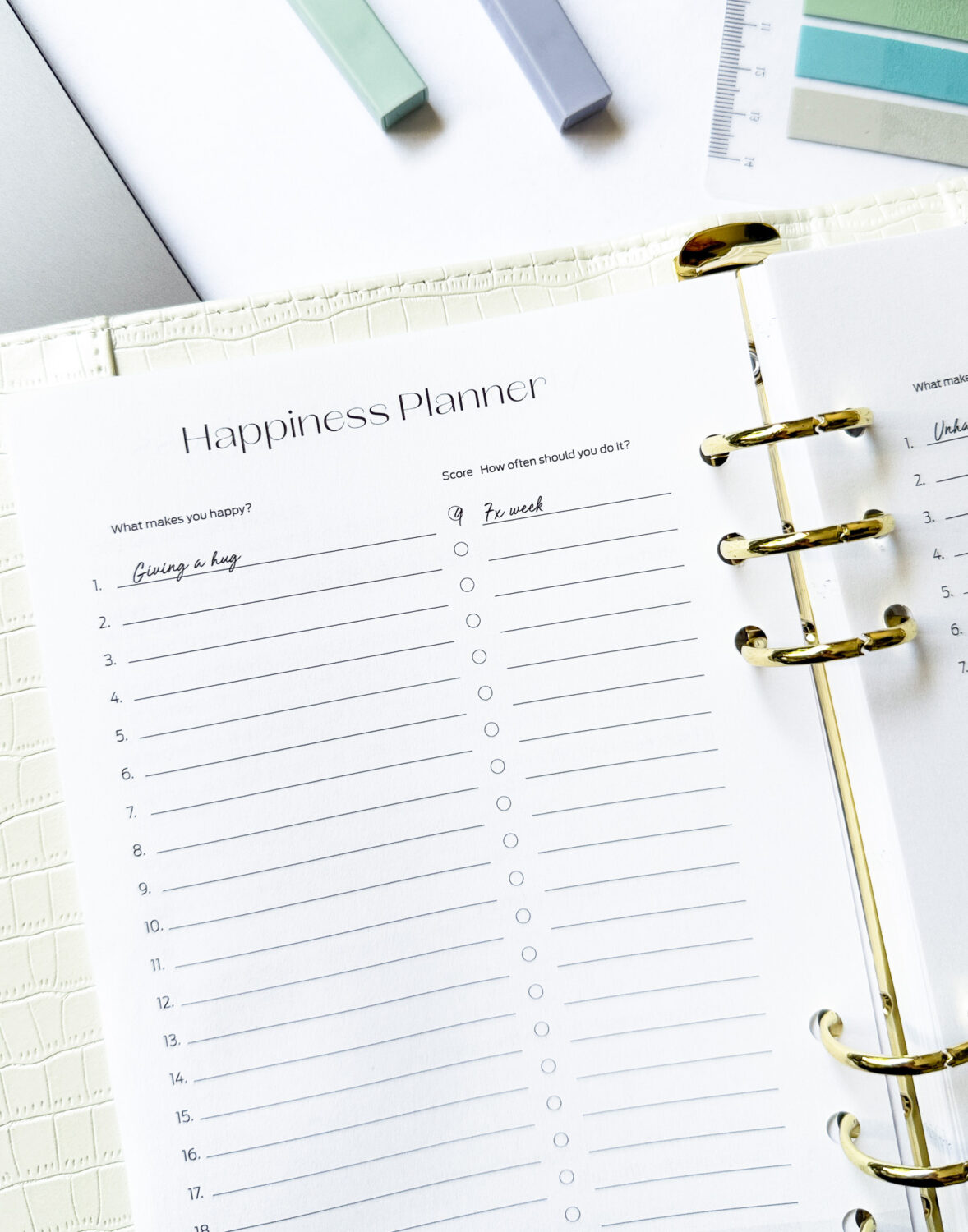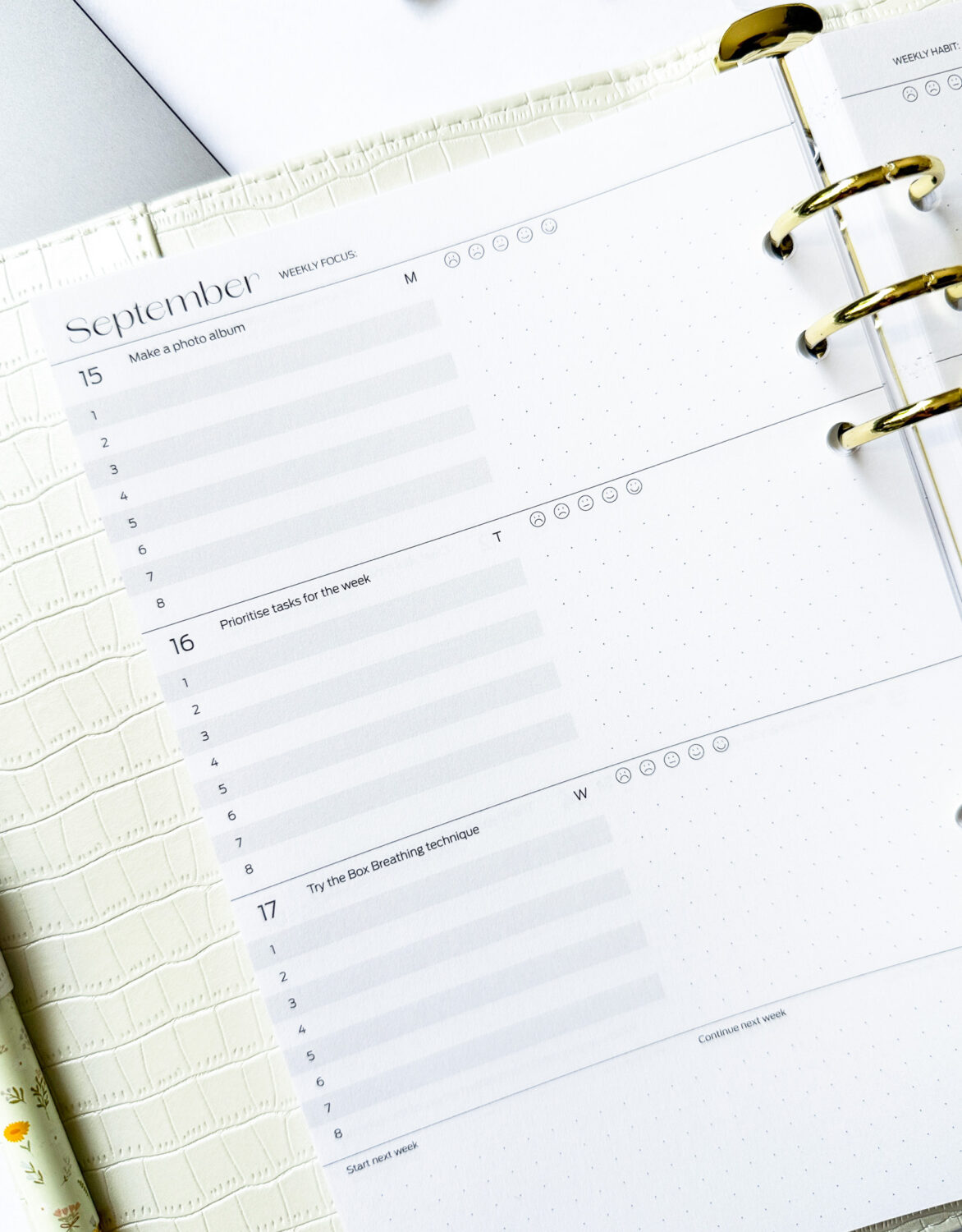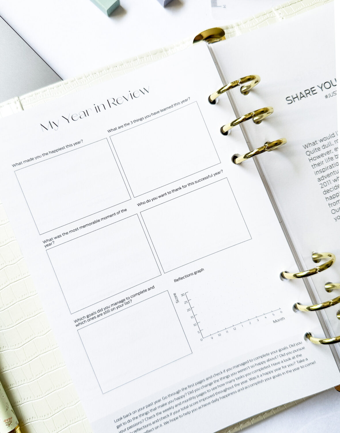 Plan your year with the new Happy Calendar planner. Dream big and set your goals. The planner has plenty of space to write down your weekly tasks and objectives. Inside, you’ll also find the priority matrix from the productivity journal. At the end of the year, use the reflection pages to review and analyze your progress.